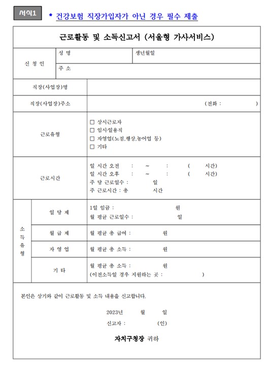 '서울형 가사서비스' 추가 제출 서류 및 유의사항