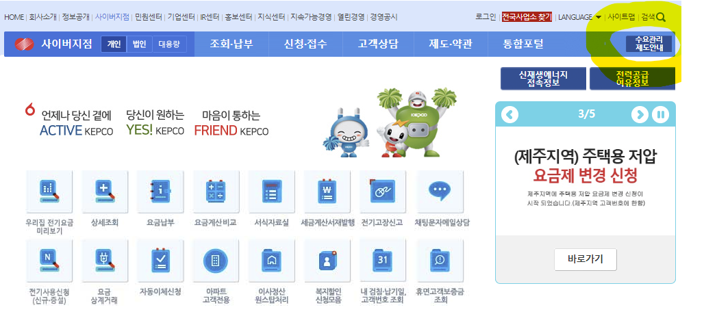 2. 초기화면 오른쪽 상단 '수요관리제도안내' 클릭