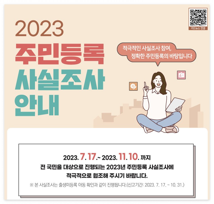 정부에서 2023년도 모든 국민들을 대상으로 주민등록 사실조사를 실시한다고 합니다.