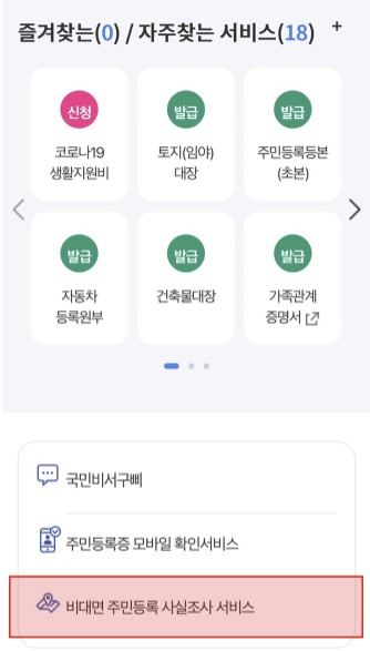 4. 메인화면에서 '비대면 주민등록 사실조사 서비스' 바로가기